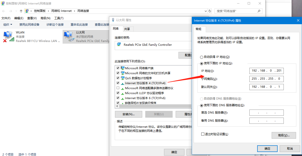 3、將電腦IP設(shè)置為與設(shè)備同網(wǎng)段的IP:192.168.0.201。