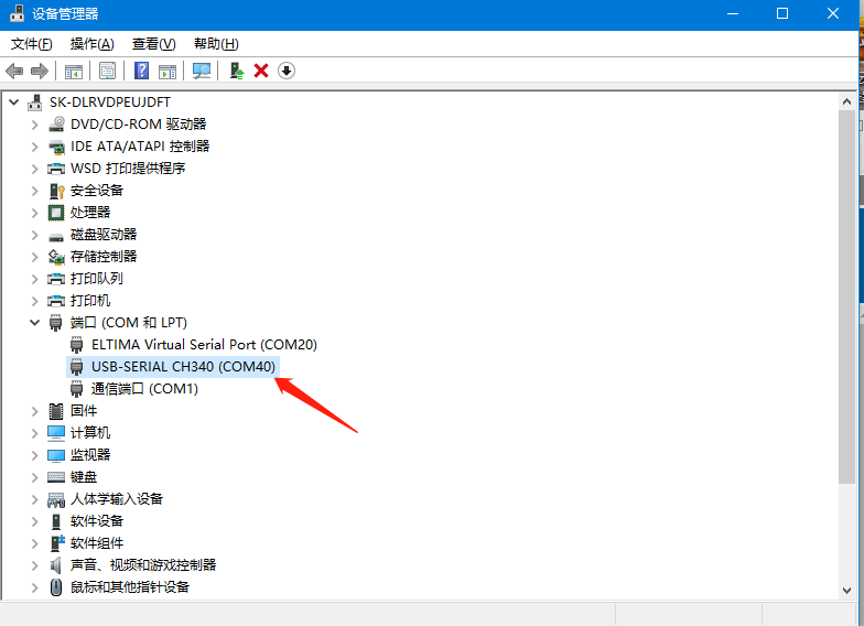 10、在電腦設(shè)備管理器處確認串口轉(zhuǎn)USB插在電腦上識別到的COM口為:COM40。