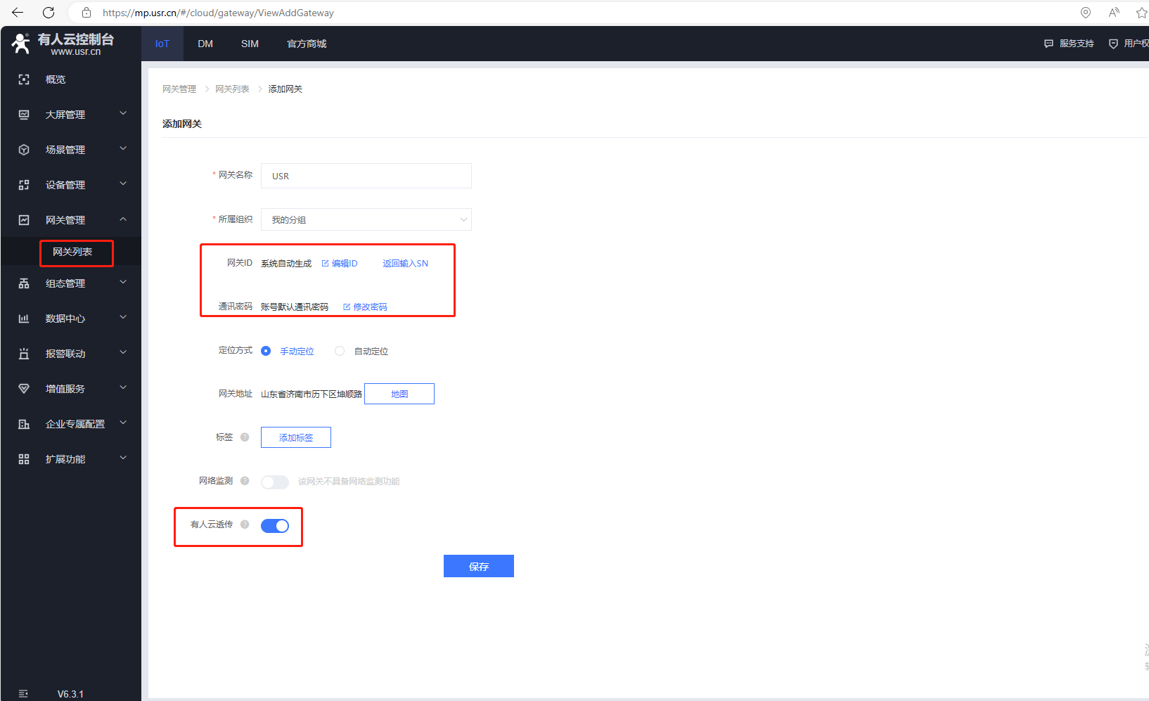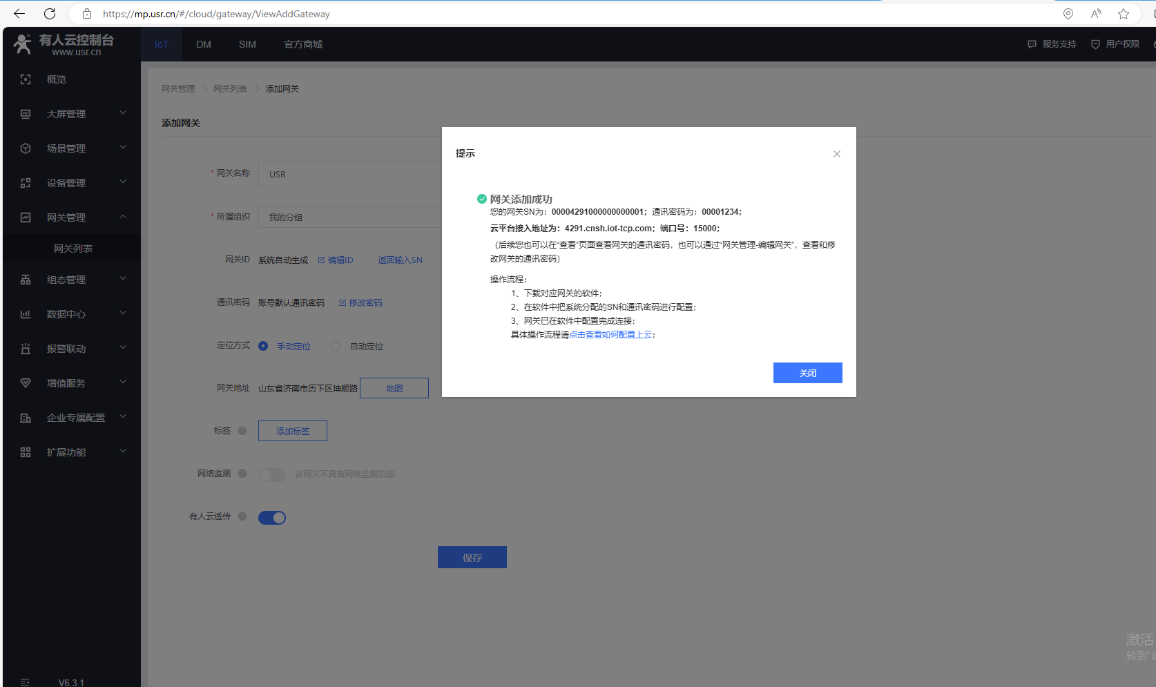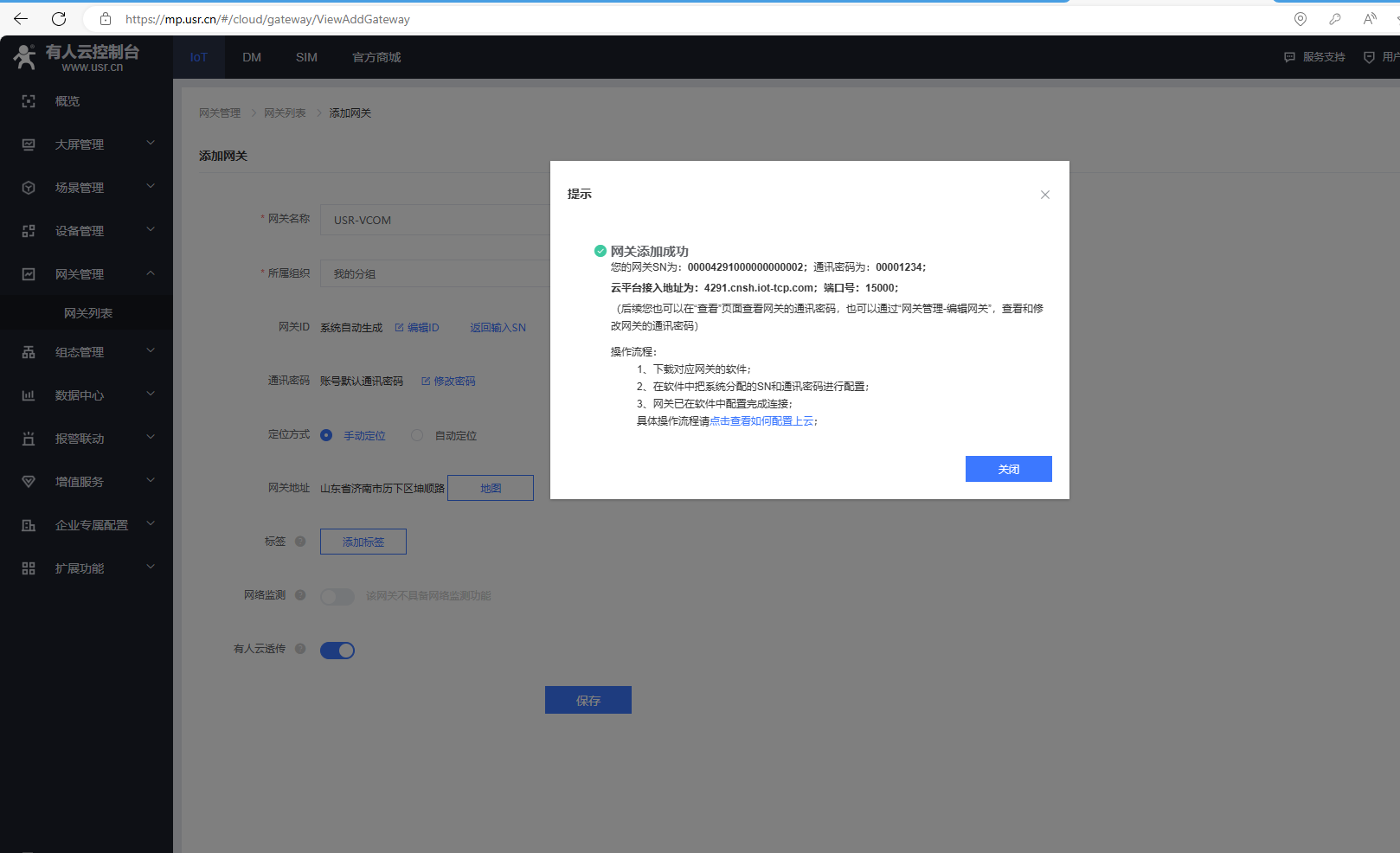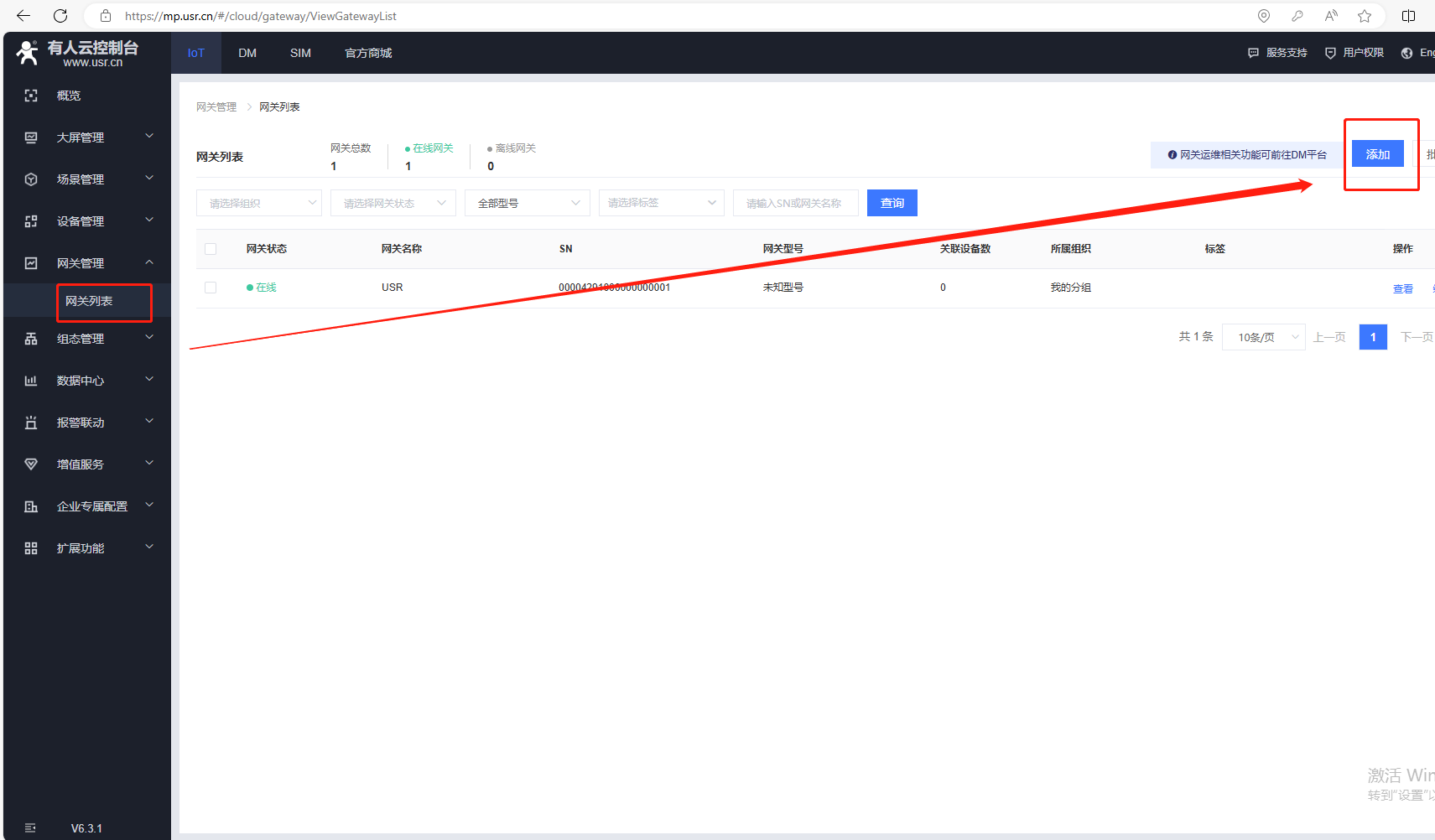 添加完,有人云,網(wǎng)關(guān)列表,USR-VCOM在線。