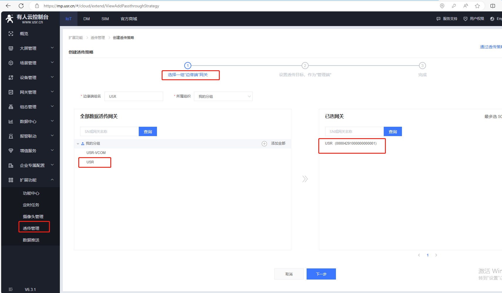 2、選擇邊緣端網(wǎng)關(guān),添加的USR產(chǎn)品設(shè)備