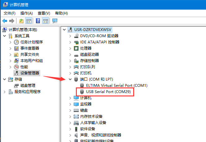 4、在設(shè)備管理器中查看端口信息,確定W610串口使用的串口號(hào),如下圖所示電腦端口號(hào)為COM29.