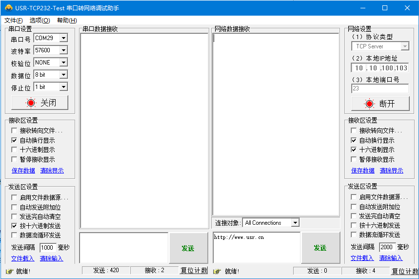 TCP232-TEST串口及網(wǎng)絡(luò)調(diào)試助手軟件:http://www.xyglz.cn/Download/27.html