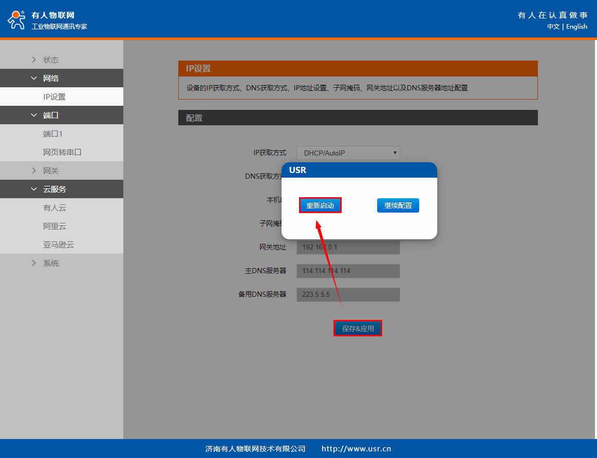 點(diǎn)擊“保存&應(yīng)用”,點(diǎn)擊“繼續(xù)配置”。