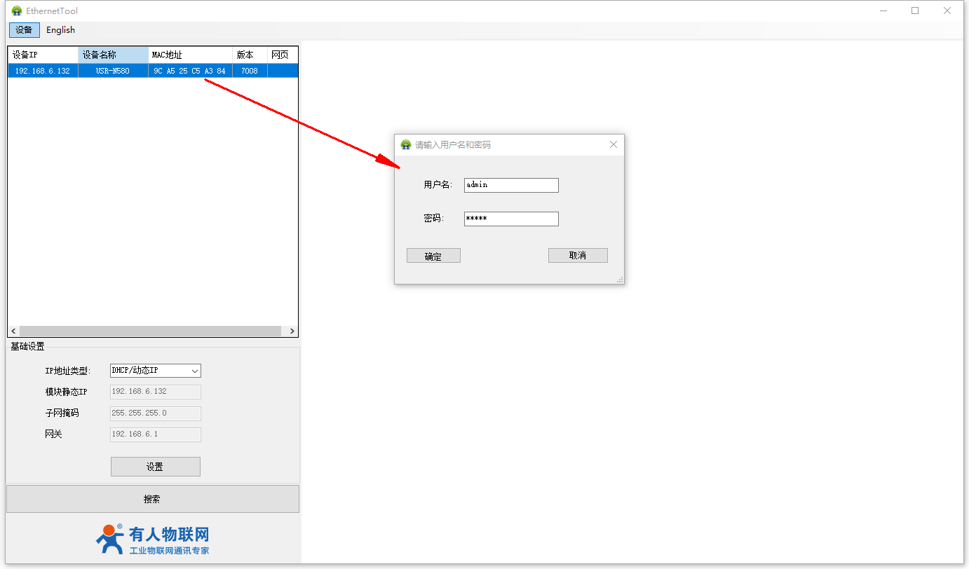 用H7系列配置軟件搜索N580設(shè)備,單擊搜索