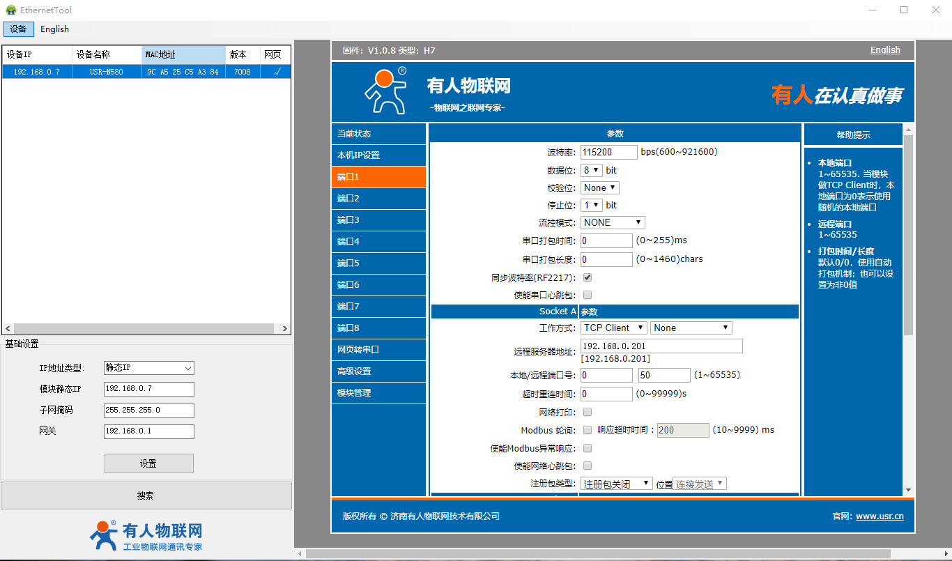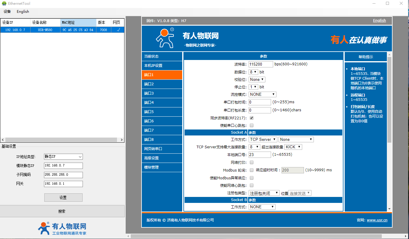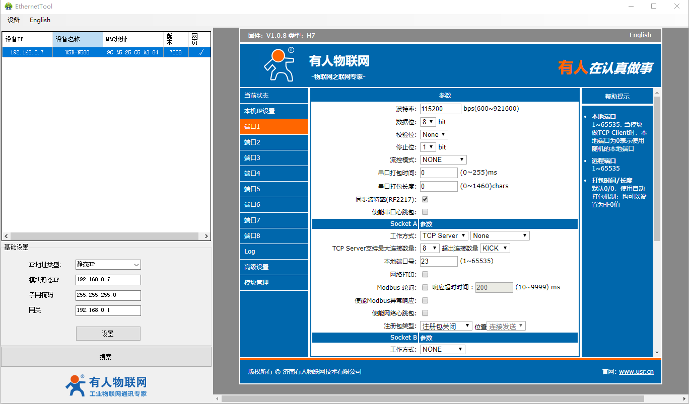 1、USR-N580-H7產(chǎn)品 數(shù)量1個