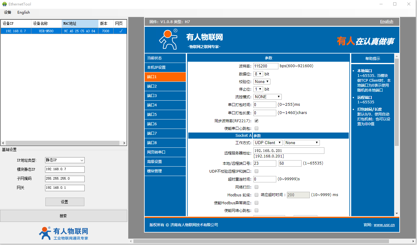 USR-N580和虛擬串口局域網(wǎng)一對一通訊案例