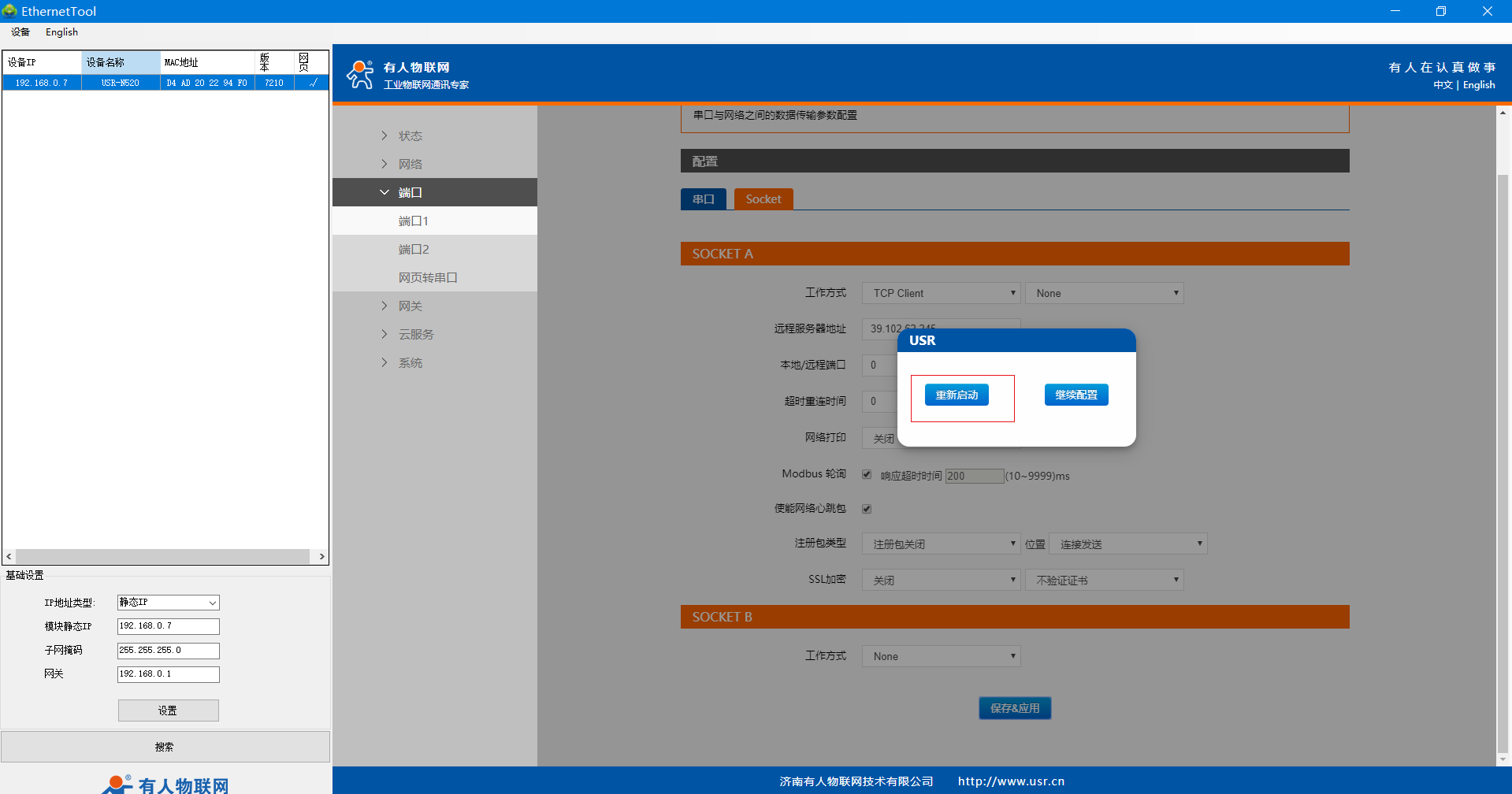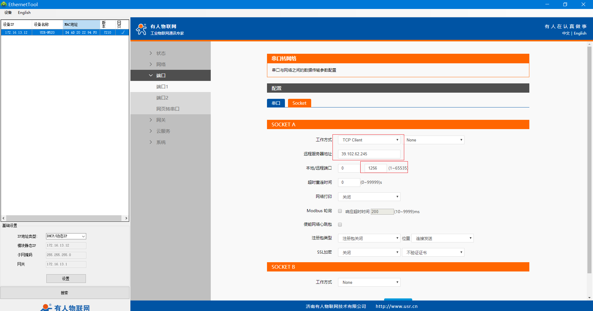 USR-N520-H7-6(二期)連接遠(yuǎn)程服務(wù)器設(shè)置案例