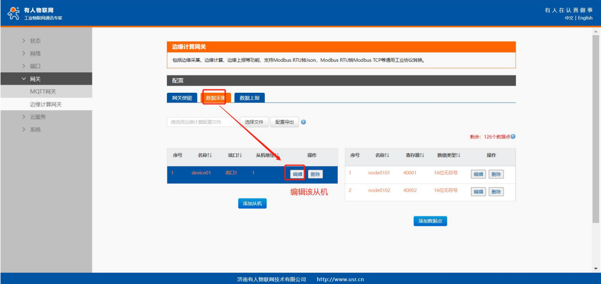 (2) 在“數(shù)據(jù)采集”配置頁(yè)選中默認(rèn)從機(jī),點(diǎn)擊“編輯”