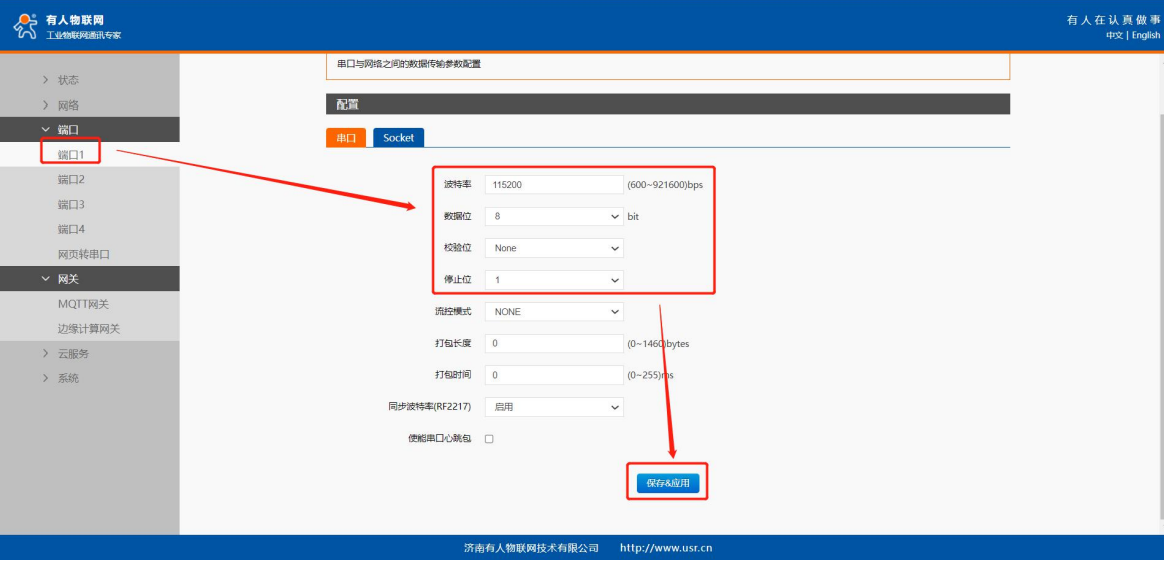 (1) 在“端口”--“端口 1”界面配置端口 1 串口參數(shù)