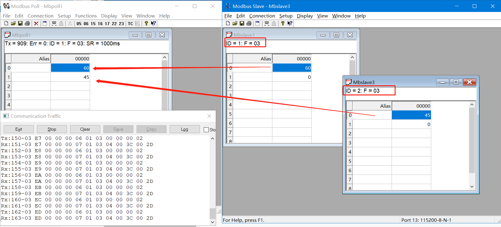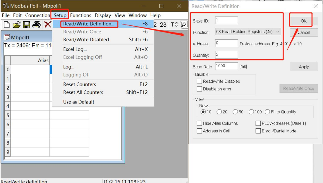 本例中配置串口號(hào) 1,從機(jī)地址 1,輪詢間隔 100
