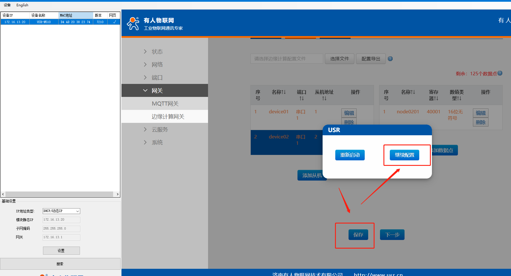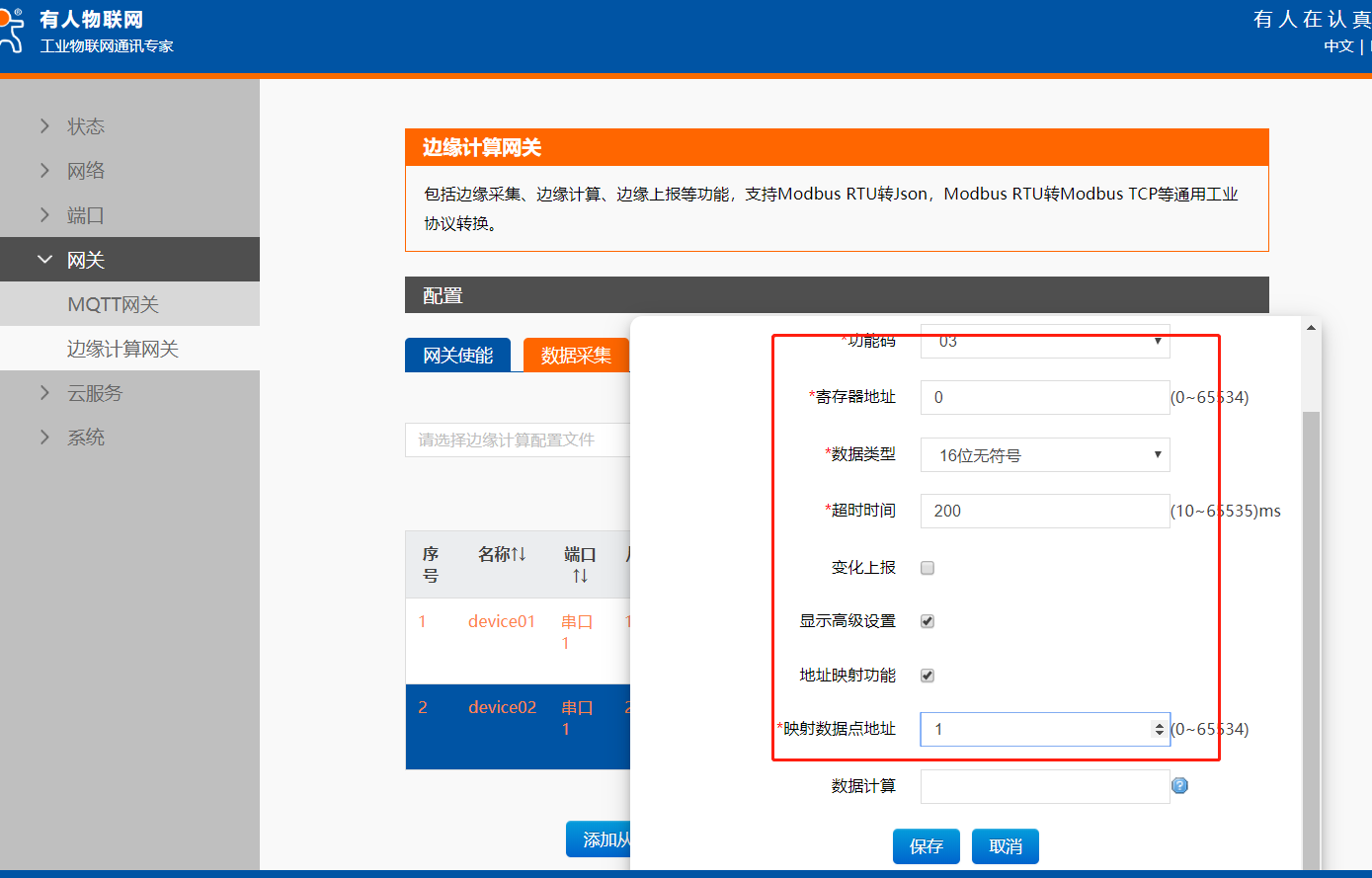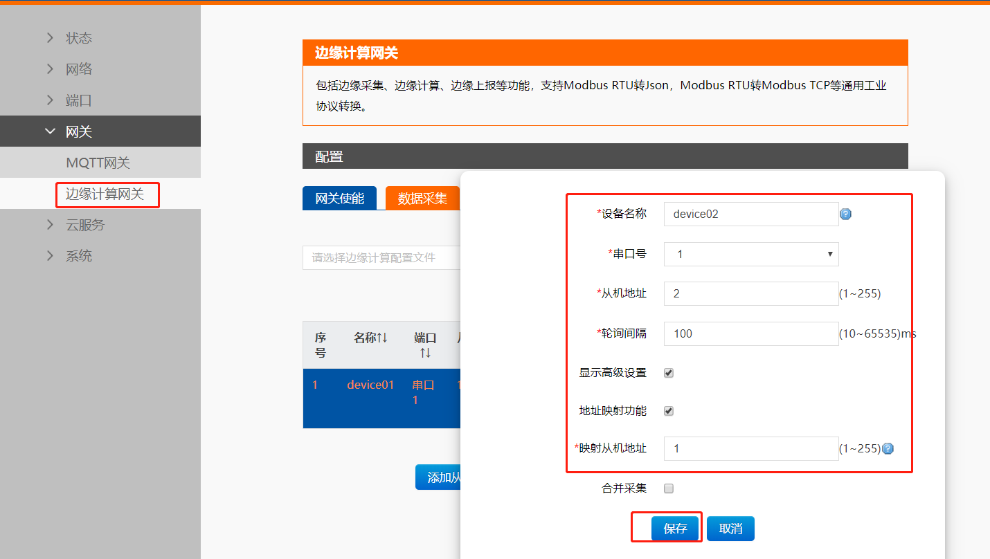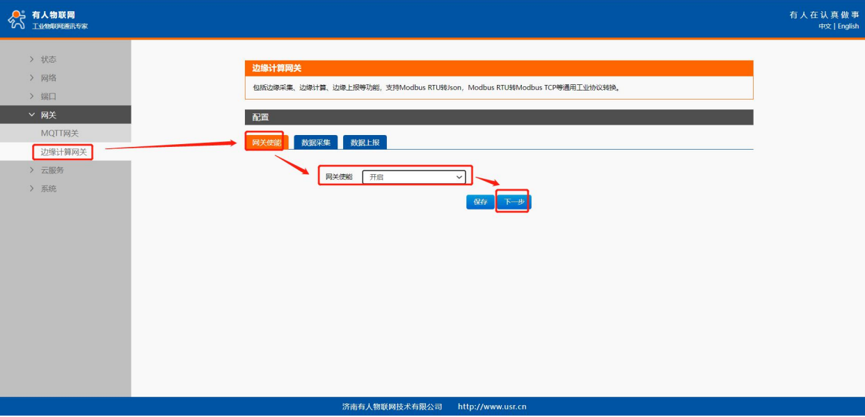 (1)進(jìn)入N510的內(nèi)置網(wǎng)頁(yè),選擇網(wǎng)關(guān)下面的邊緣計(jì)算網(wǎng)關(guān)
