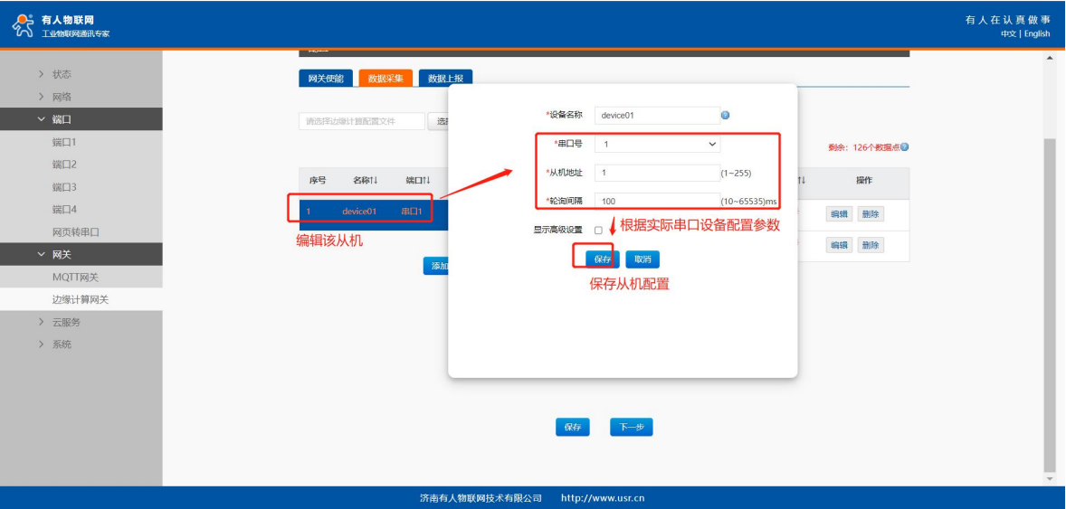 根據(jù)實(shí)際待采集的從機(jī)設(shè)備配置參數(shù)