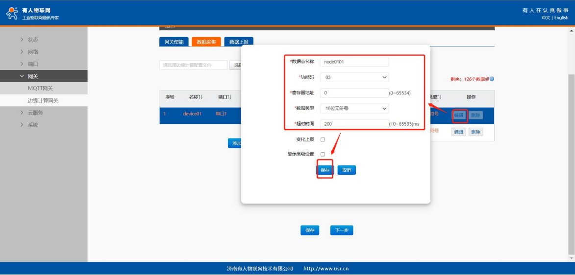 (6)點(diǎn)擊“保存”,保存該數(shù)據(jù)點(diǎn)配置