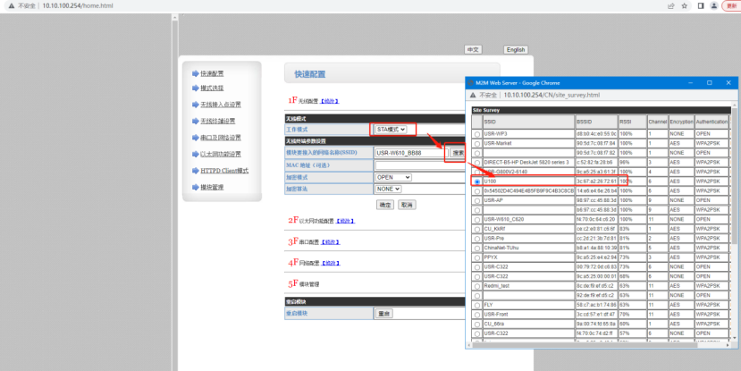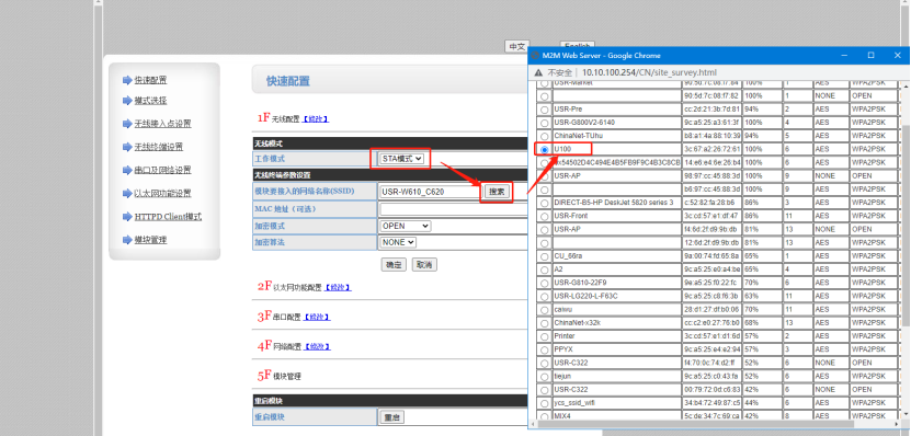 2)USR-W610設(shè)置STA模式,連接路由器的WiFi,填上密碼,點擊確定