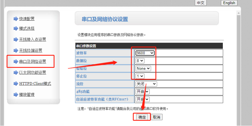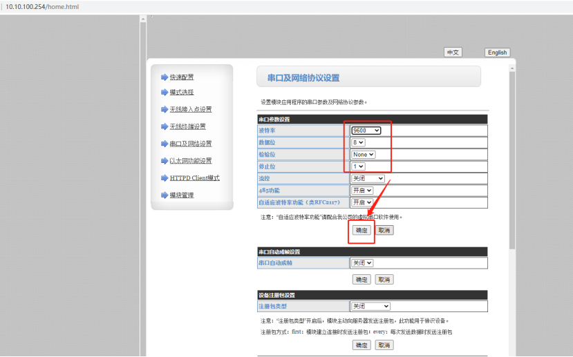 3)波特率改成和要接的串口設(shè)備一致(測試改完9600),點擊確定