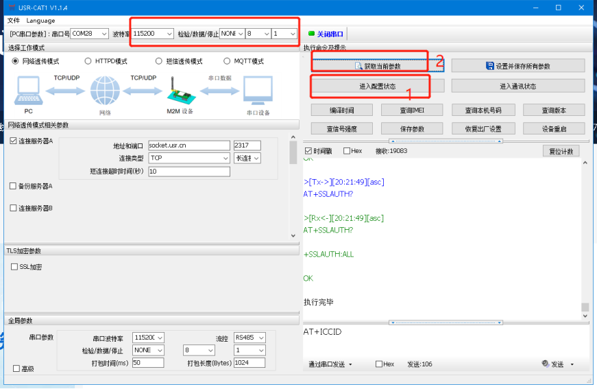 1、下載并安裝設(shè)備的設(shè)置軟件,在電腦的設(shè)備管理器中查看電腦端生成的com口(com28),在設(shè)置軟件中打開對(duì)應(yīng)的com口,使用設(shè)備的默認(rèn)串口參數(shù)(115200 N 8 1)進(jìn)入產(chǎn)品的配置界面并且獲取當(dāng)前參數(shù)。