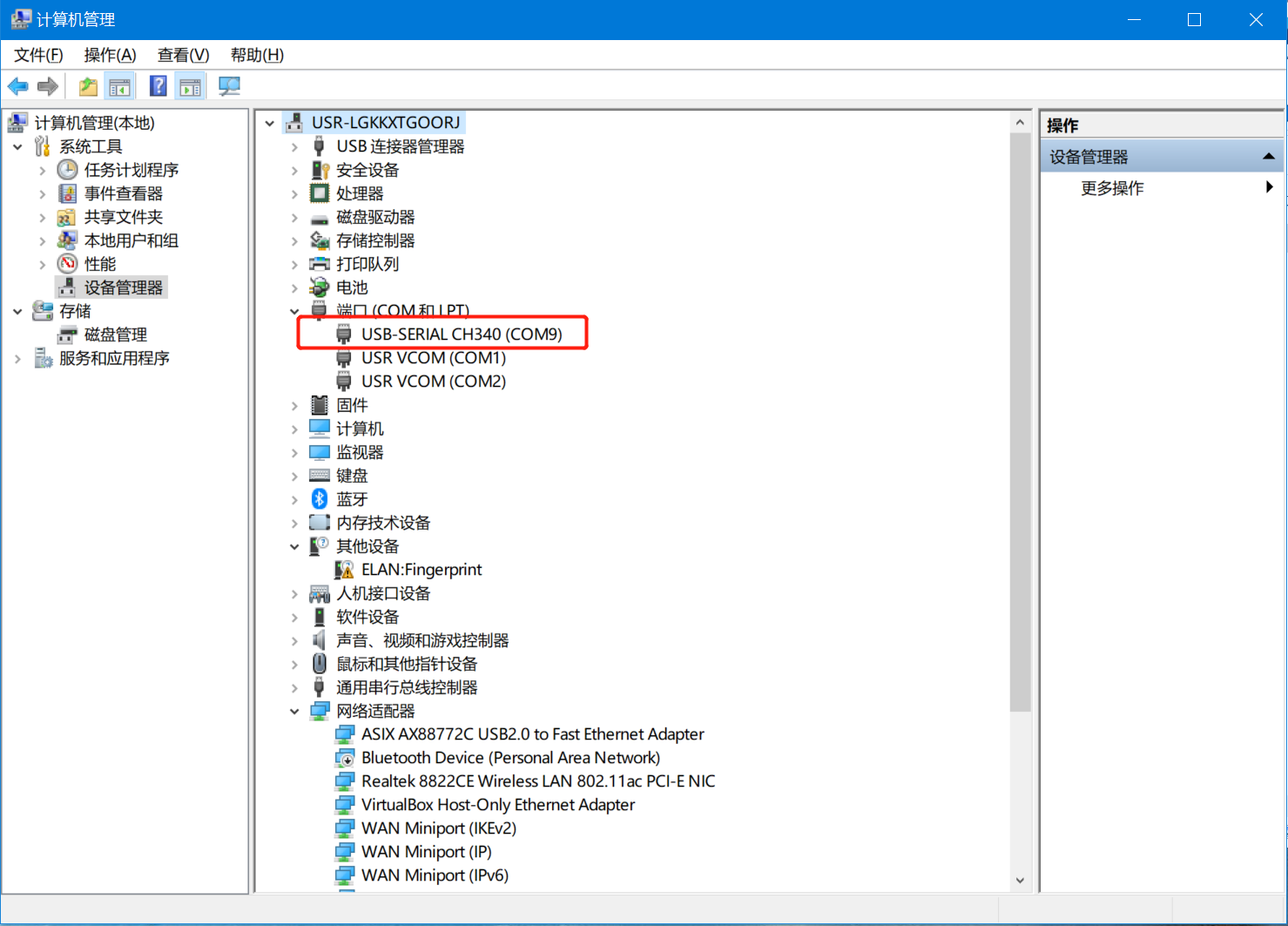 注意:以win10為例,查看串口號可在“我的電腦”->“管理”->“設(shè)備管理器”->“端口”中查詢。