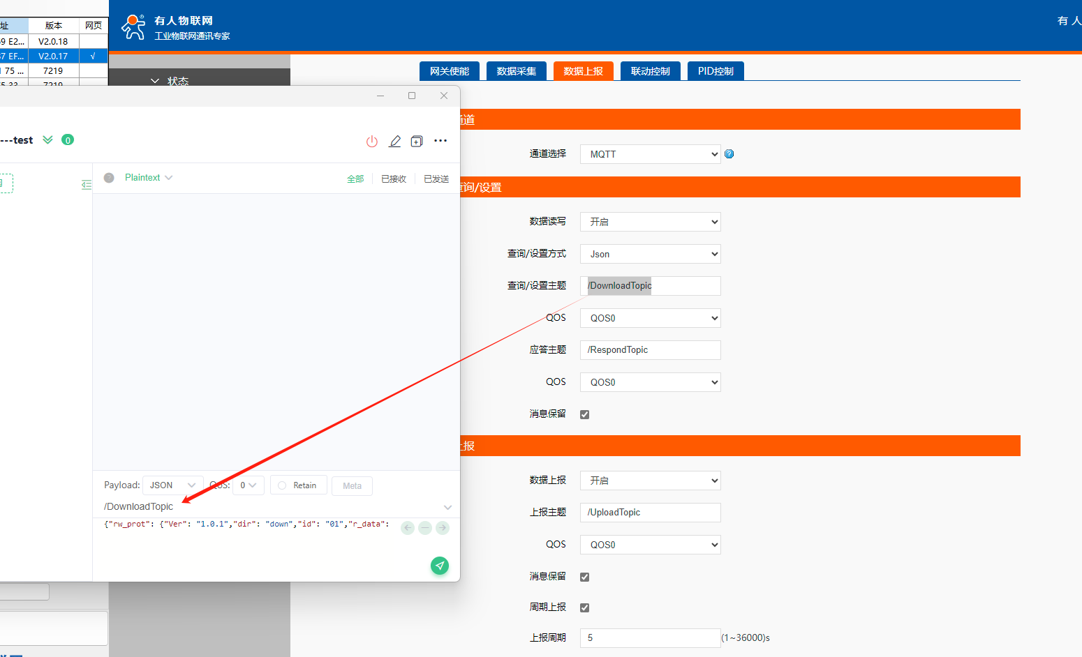 MQTTX下發(fā)控制DO動(dòng)作吸合,注意主題