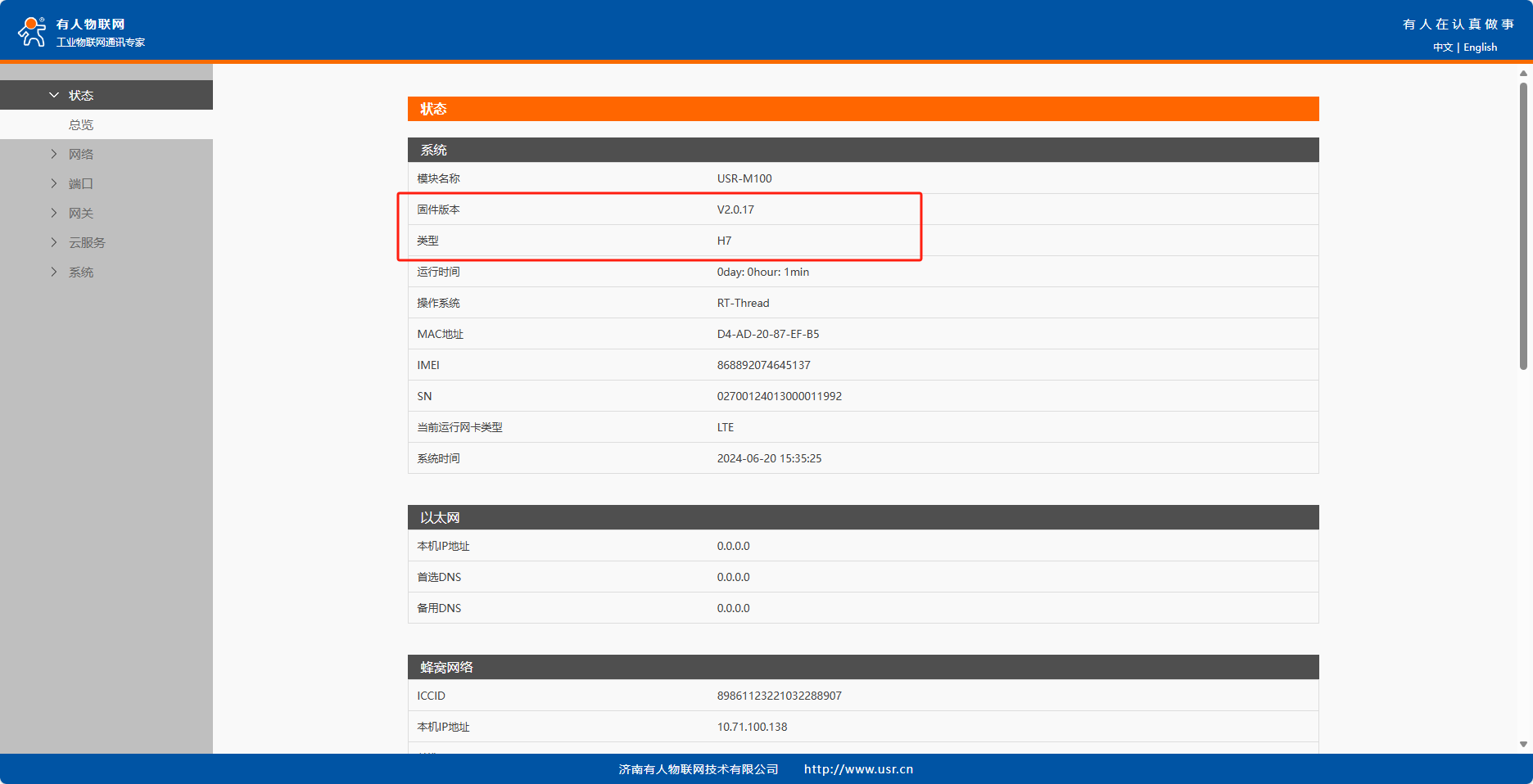 3、進(jìn)入到USR-M100內(nèi)置網(wǎng)頁