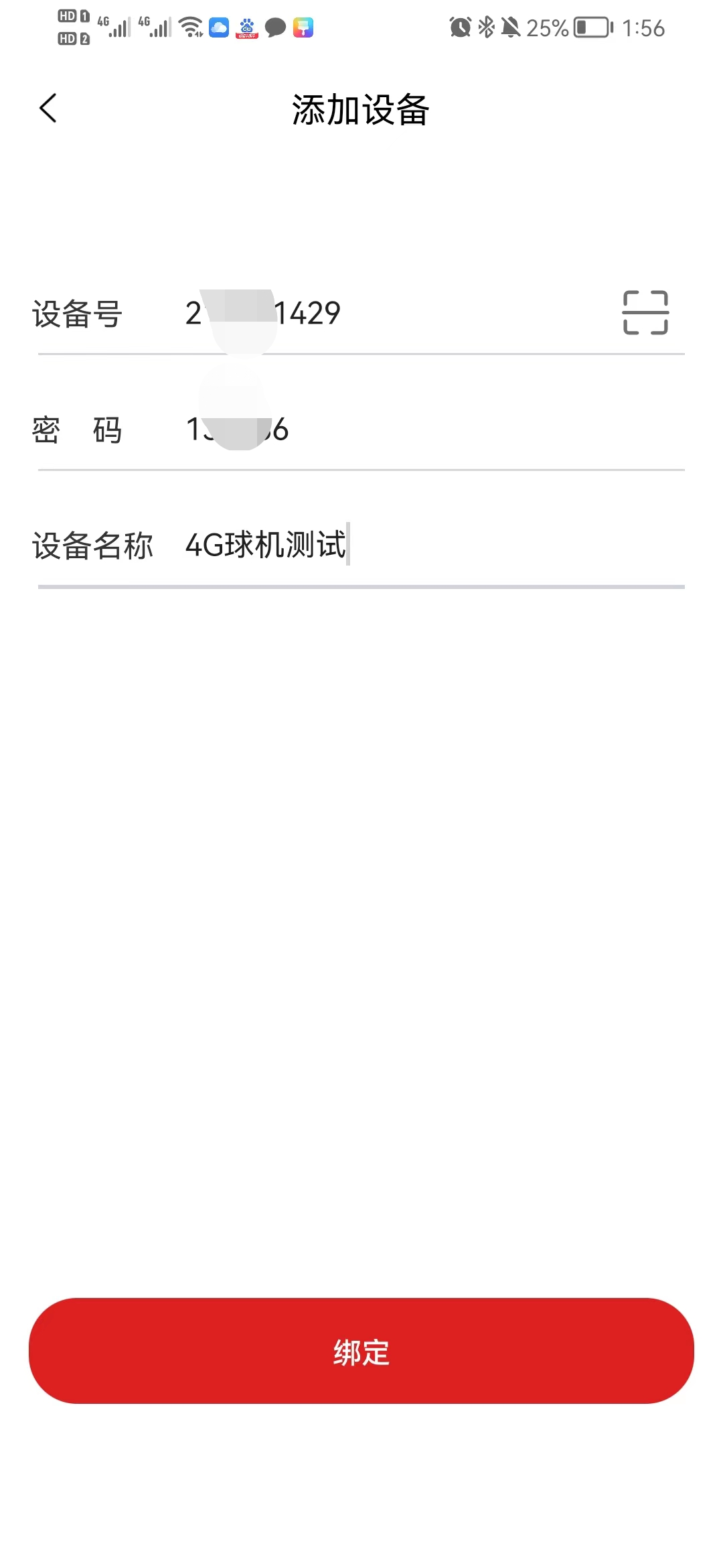 3. 型號(hào)選擇4G球機(jī),掃描機(jī)身二維碼添加設(shè)備,填寫(xiě)設(shè)備名稱(chēng),點(diǎn)擊綁定即可