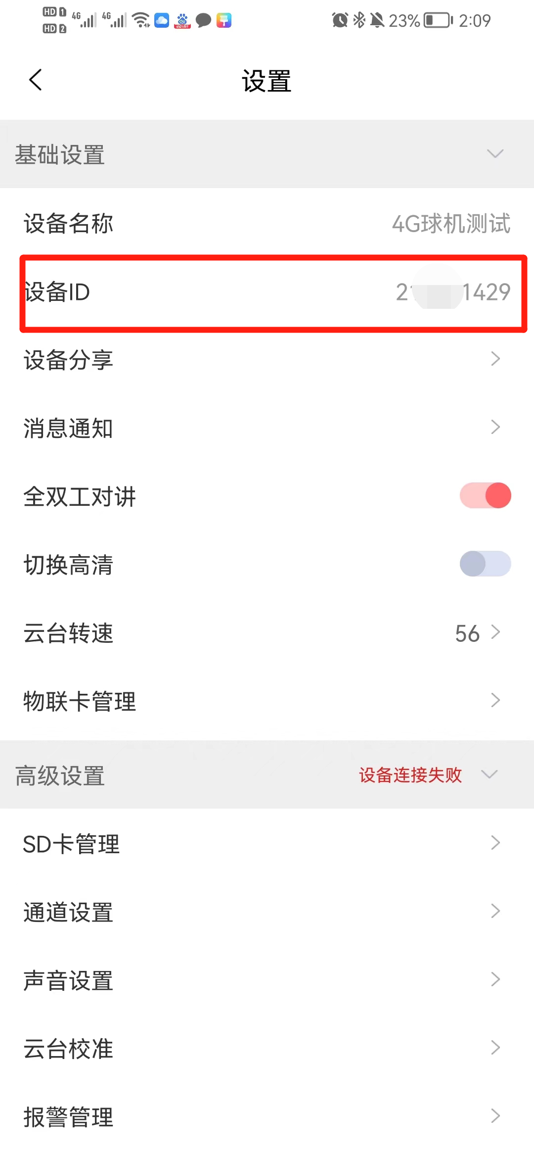 5. 點(diǎn)擊4G球機(jī)右上角設(shè)置按鈕獲取到設(shè)備ID號(hào)