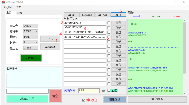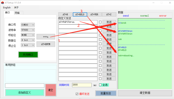(1) 串口發(fā)送+++a 進(jìn)配置,返回a+ok