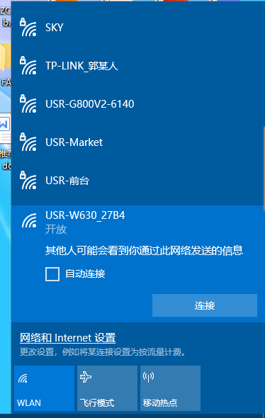 2、電腦連接W630的wifi,連接成功后,電腦會獲取到10.10.100.xx網(wǎng)段的IP地址
