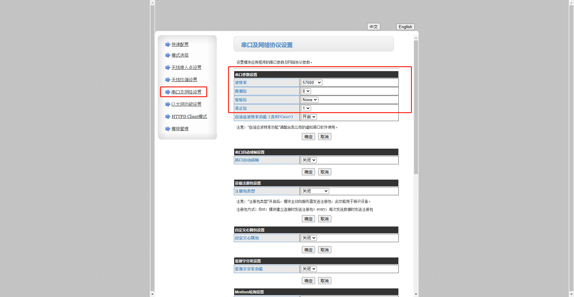 5、串口及網(wǎng)絡(luò)設(shè)置,可以根據(jù)實(shí)際情況修改W630的串口等參數(shù)在本案例中我們保持W630出廠默認(rèn)參數(shù)