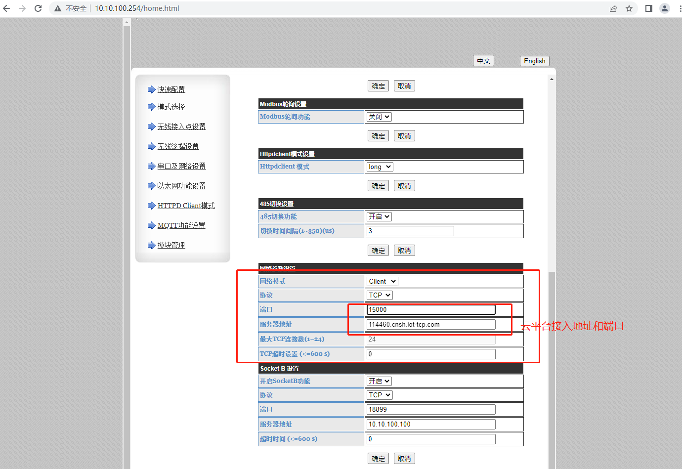 自動生成云平臺接入地址和端口號(DR404 串口即網(wǎng)絡設置--網(wǎng)絡參數(shù)設置)
