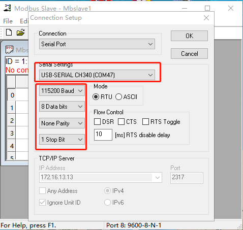 1、打開modbus slave軟件,選擇串口以及設置串口參數