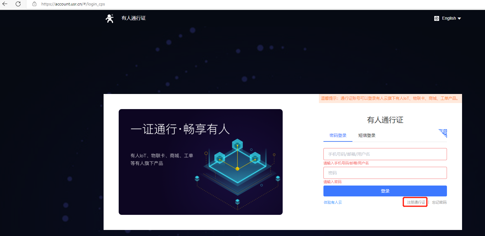 1、登錄有人云平臺:https://account.usr.cn/#/login_cps(如果沒有賬號先申請通行證)