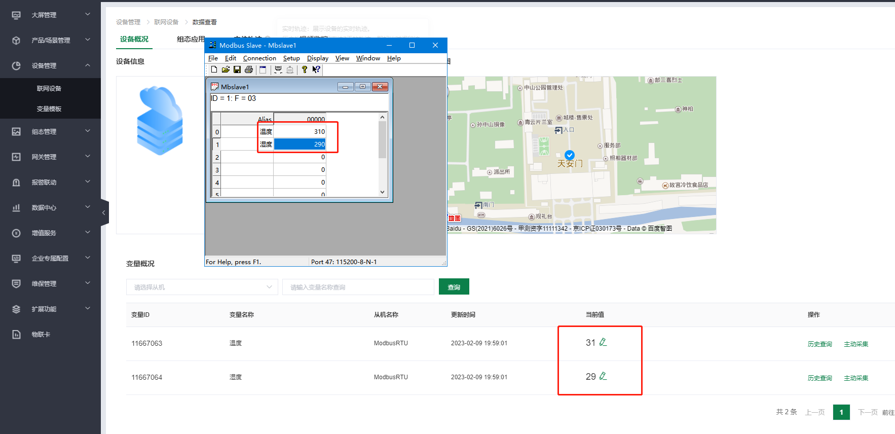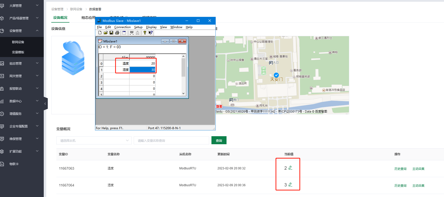 說明:本案例中,串口設備用電腦端的modbus slave軟件模擬來測試