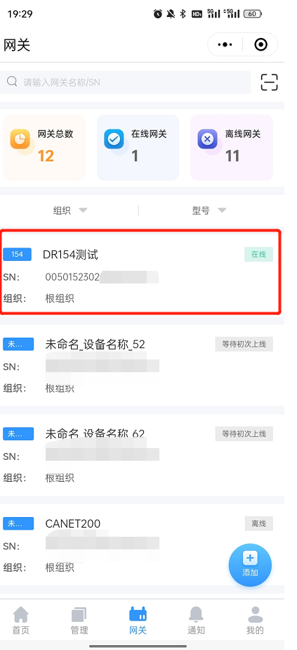 4.稍等一會兒,DR154就會顯示在線狀態(tài)。