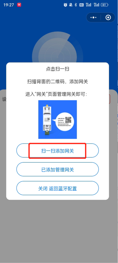 2.點(diǎn)擊“掃一掃添加網(wǎng)關(guān)”,掃一掃DR154背面二維碼。