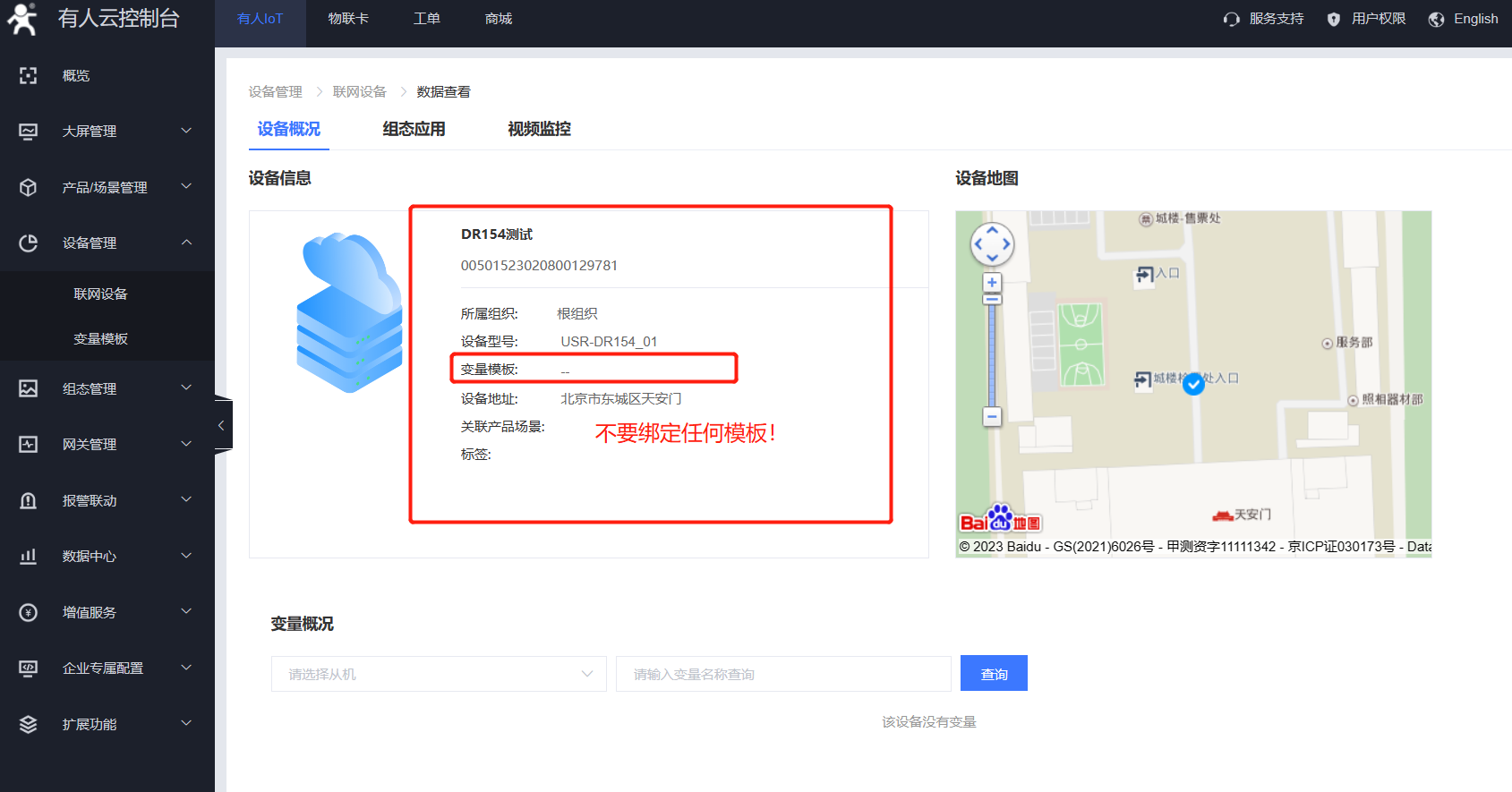 此時(shí)注意:DR154不要在云端綁定任何模板,不然DTU會自動(dòng)切換到有人云模式。