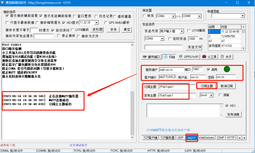 我司MQTT默認(rèn)服務(wù)器:mqtt.usr.cn 端口:1883
