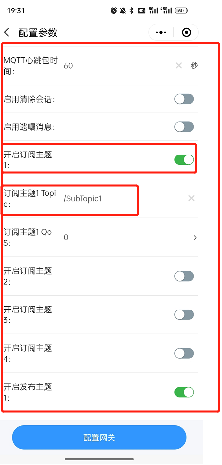 五、打開MQTT客戶端軟件,連接MQTT服務(wù)器,并設(shè)置好訂閱主題和發(fā)布主題。