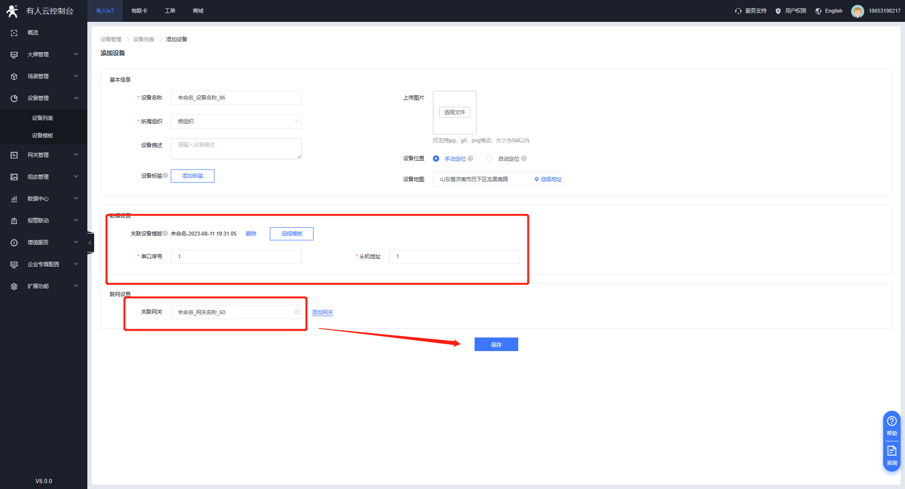 透?jìng)髟频挠蛎麨?strong>143848.cnsh.iot-tcp.com,透?jìng)髟频亩丝跒?5000,設(shè)置完點(diǎn)擊保存