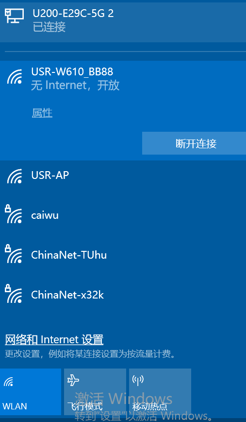 1.w610接上WiFi天線,電腦連接上wifi,232串口轉(zhuǎn)USB接到電腦。并關(guān)閉電腦防火墻、多余網(wǎng)卡和殺毒軟件。模塊出廠默認(rèn)是AP模式,電腦連接W610的wifi信號(hào),當(dāng)有設(shè)備連到W610的wifi后,Link指示燈亮起。SSID后面跟了4個(gè)字符,是MAC地址的后4位,MAC地址可以在設(shè)備背面的標(biāo)簽上看到。