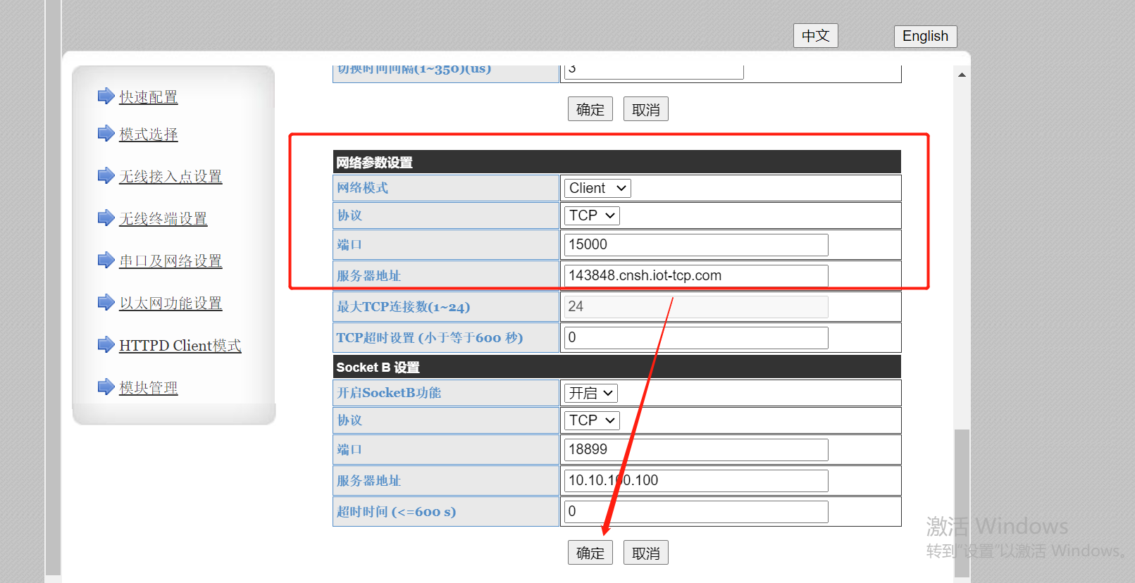 透?jìng)髟频挠蛎麨?strong>143848.cnsh.iot-tcp.com,透?jìng)髟频亩丝跒?5000,設(shè)置完點(diǎn)擊保存