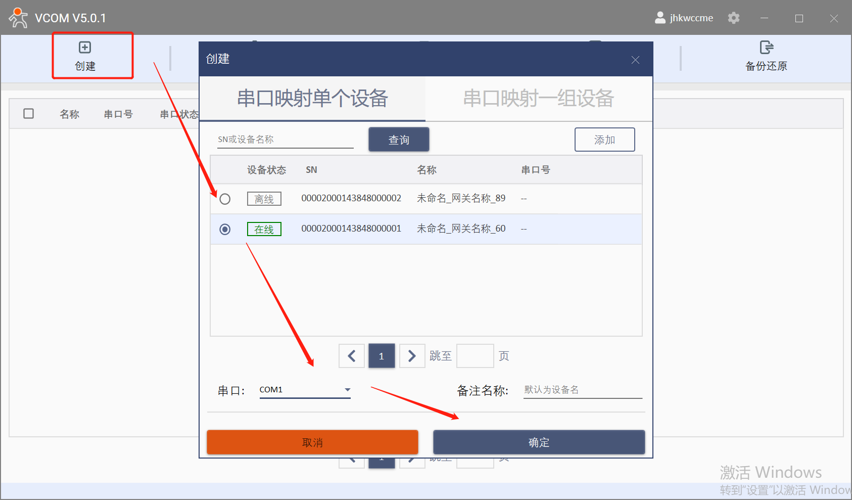 2.登錄有人賬號(hào),創(chuàng)建虛擬串口com1