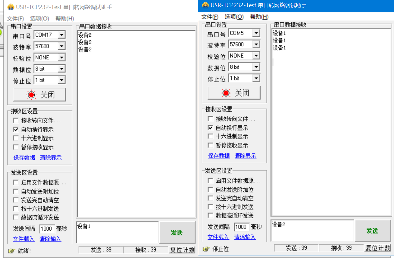 2.兩個W610串口互發(fā)數據