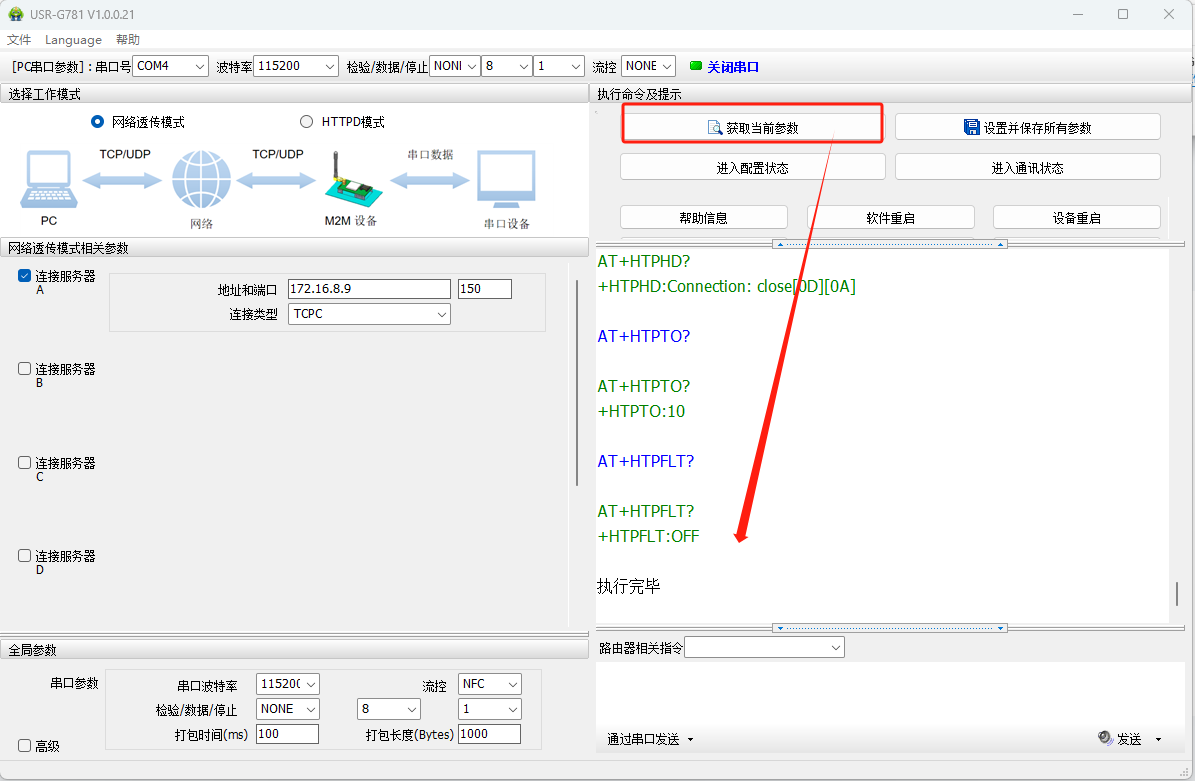 可以從全局參數(shù)中修改串口的波特率、校驗位等參數(shù),然后點擊設置并保存參數(shù)