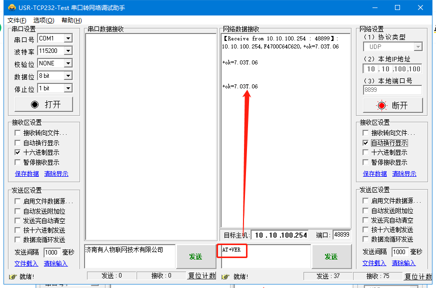 4. 在收到 ip,mac后,單播回復(fù)一個(gè)+ok  后可以使用, 查詢的AT指令必須是大寫加回車換行發(fā)送