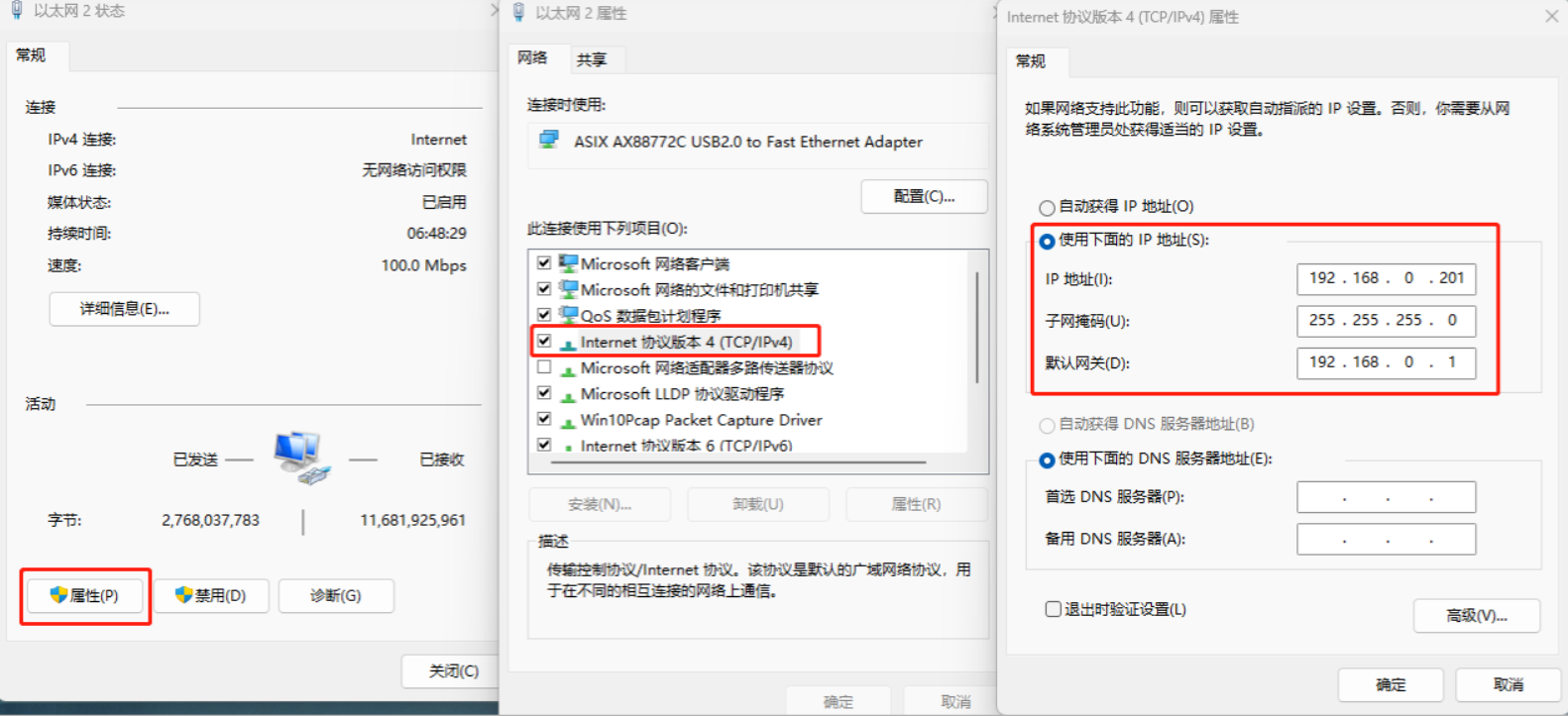 (3)電腦:控制面板--網(wǎng)絡(luò)和 Internet--網(wǎng)絡(luò)連接,IP設(shè)置和M100 IP同網(wǎng)段,M100默認(rèn)IP是192.168.0.7,網(wǎng)關(guān)192.168.0.1,將電腦本地連接IPv4設(shè)置靜態(tài)IP,192.168.0.201,子網(wǎng)掩碼255.255.255.0,網(wǎng)關(guān)192.168.0.1。