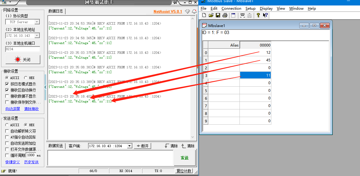 配置從機(jī)點(diǎn)位(案例中使用modbus SLAVE軟件模式)根據(jù)實(shí)際點(diǎn)位填寫功能碼、寄存器地址、數(shù)據(jù)格式