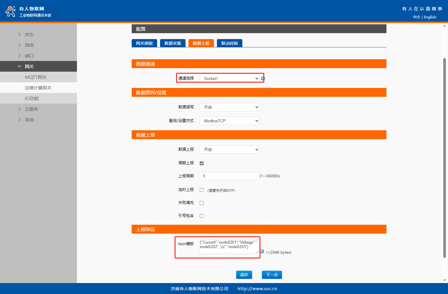 數(shù)據(jù)上報(bào)選擇“開啟”,上報(bào)周期:5s(自定義);