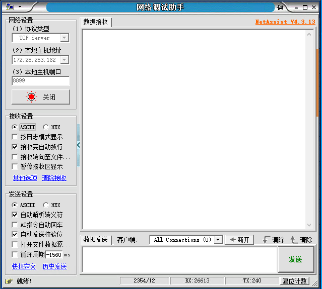 1.登錄公網(wǎng)服務(wù)器開啟tcp server服務(wù),自定義端口:8989,測(cè)試服務(wù)器下發(fā)modbus tcp采集數(shù)據(jù)。