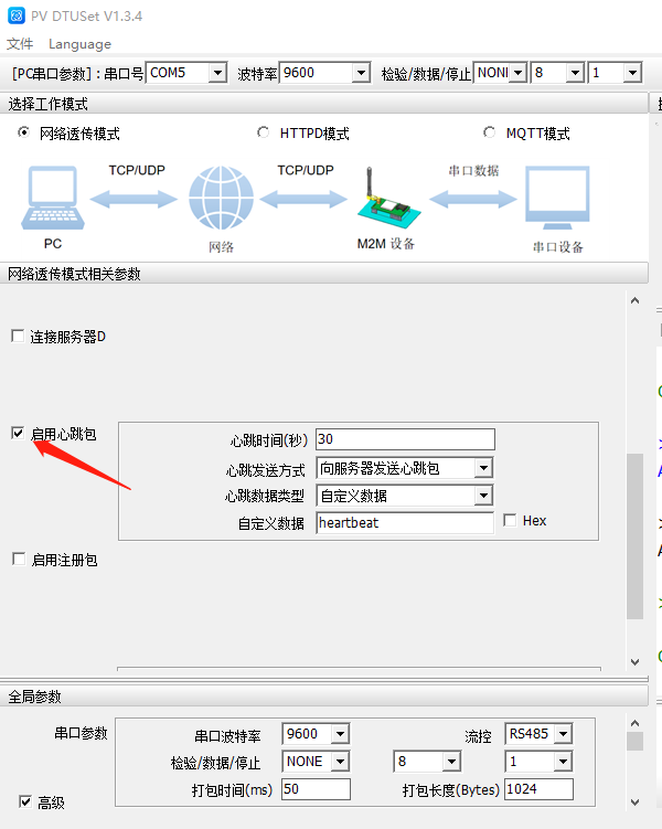 注意:設(shè)備默認(rèn)是開啟心跳包功能的,若是不需要心跳包,可以配置不啟用心跳功能。