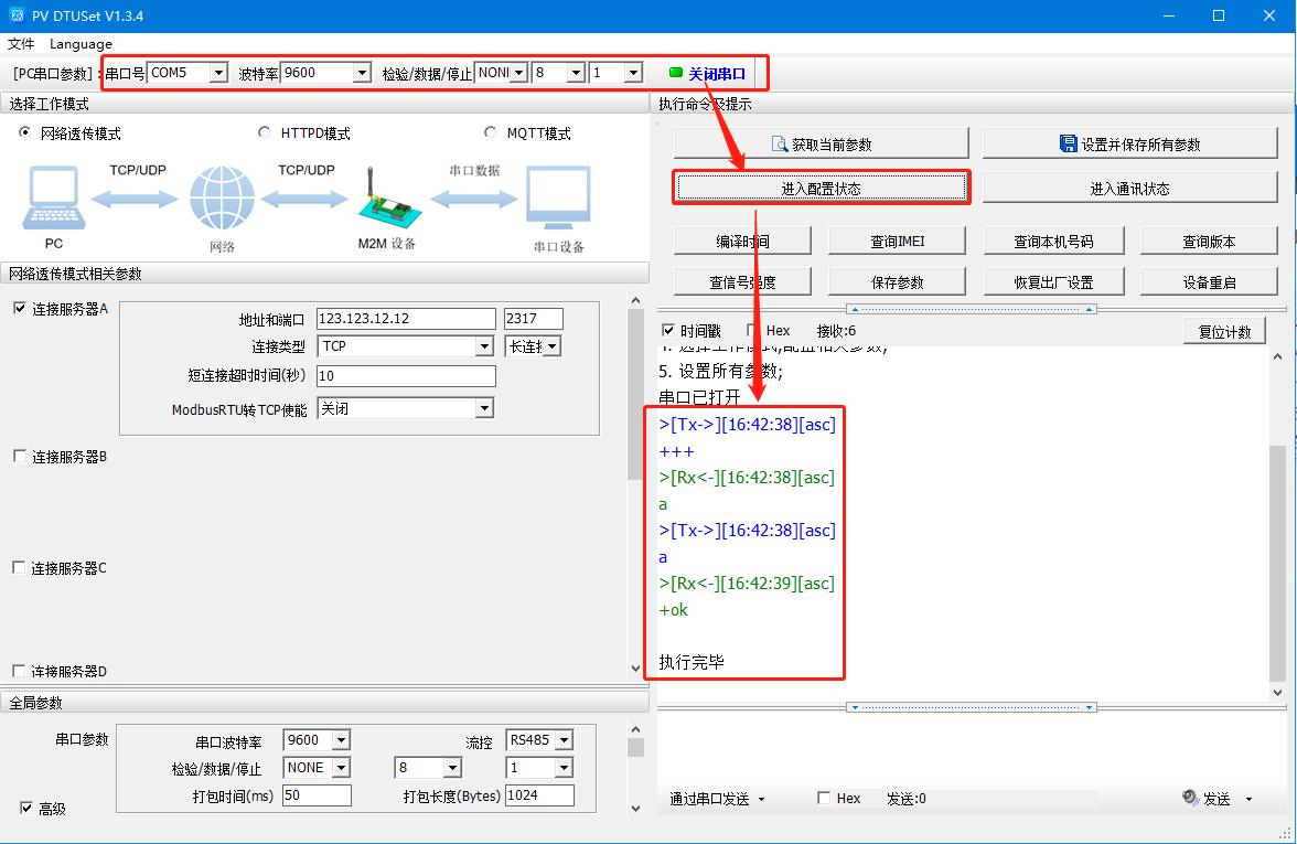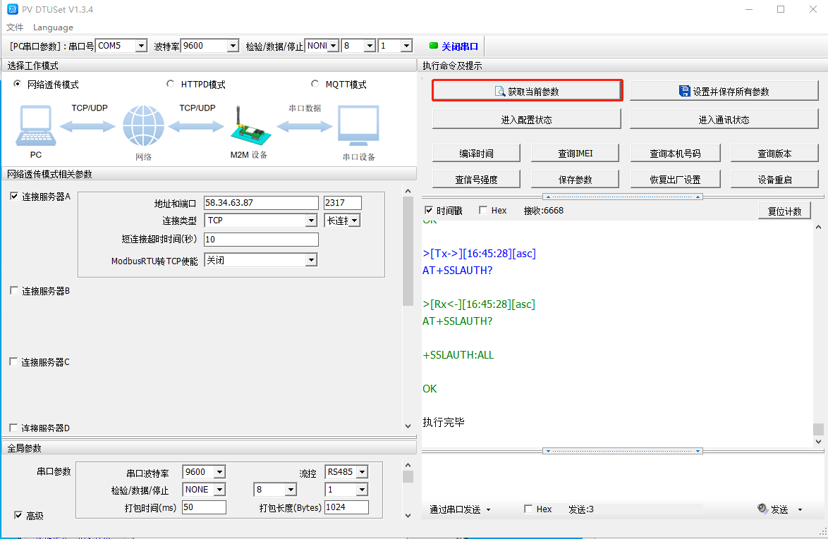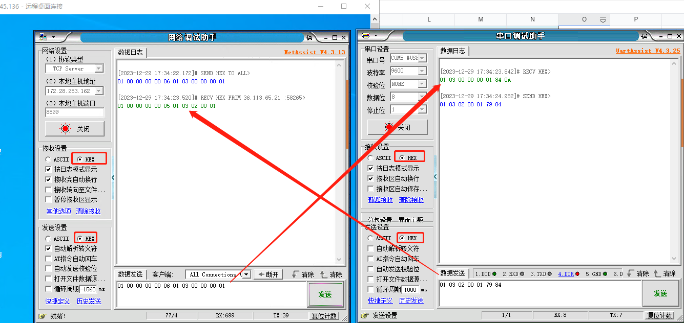 4.服務(wù)器下發(fā)modbus tcp 報(bào)文, 串口會(huì)輸出對(duì)應(yīng)轉(zhuǎn)義后的modbus rtu報(bào)文, 串口發(fā)送modbus rtu數(shù)據(jù),服務(wù)器接收對(duì)應(yīng)的modbus tcp報(bào)文。
